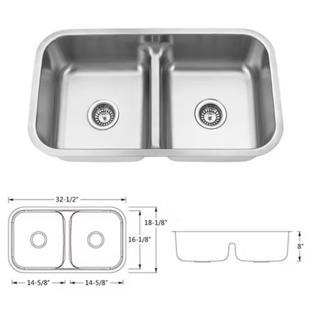 50/50 Stainless Steel Double Bowl Sink (Low Divide)